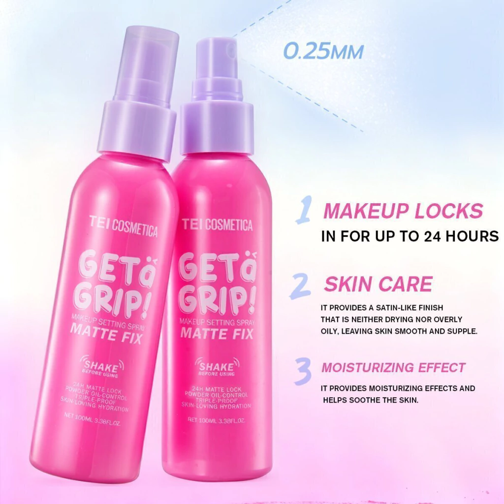 Descubrí el Spray Fijador Geta Grip!, el aliado ideal para que tu maquillaje dure todo el día con un acabado impecable, ya sea dewy o matte. Este makeup setting spray está formulado para adaptarse a tus necesidades, ofreciendo una fijación duradera que mantiene tu piel fresca y radiante.